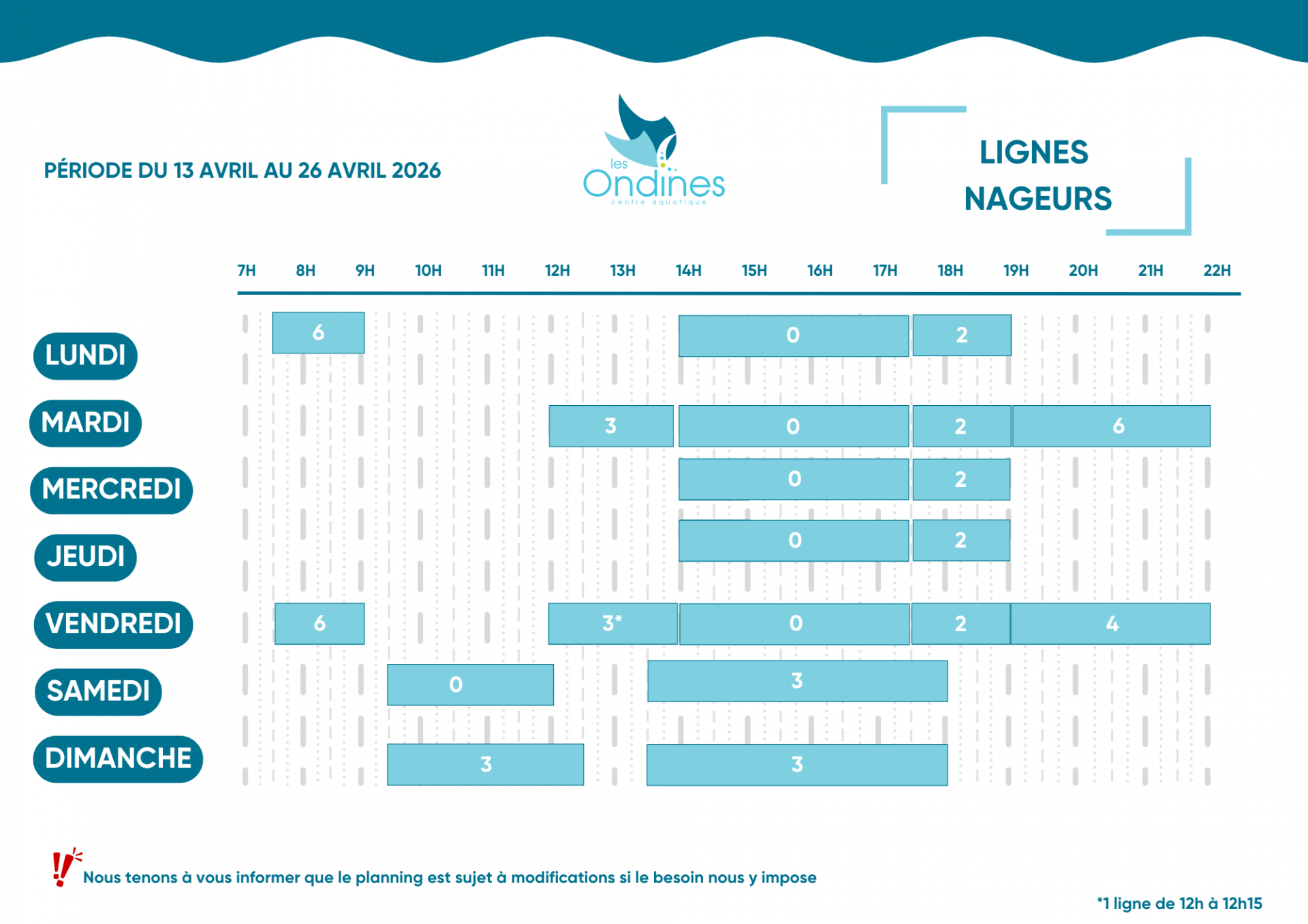 Lignes de nage - Période petites vacances scolaire