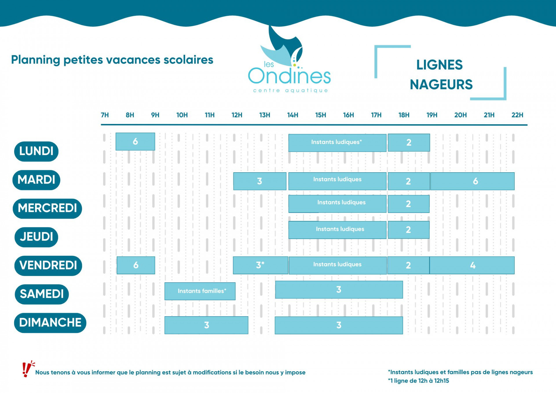Ligne nageur petites vacances scolaires